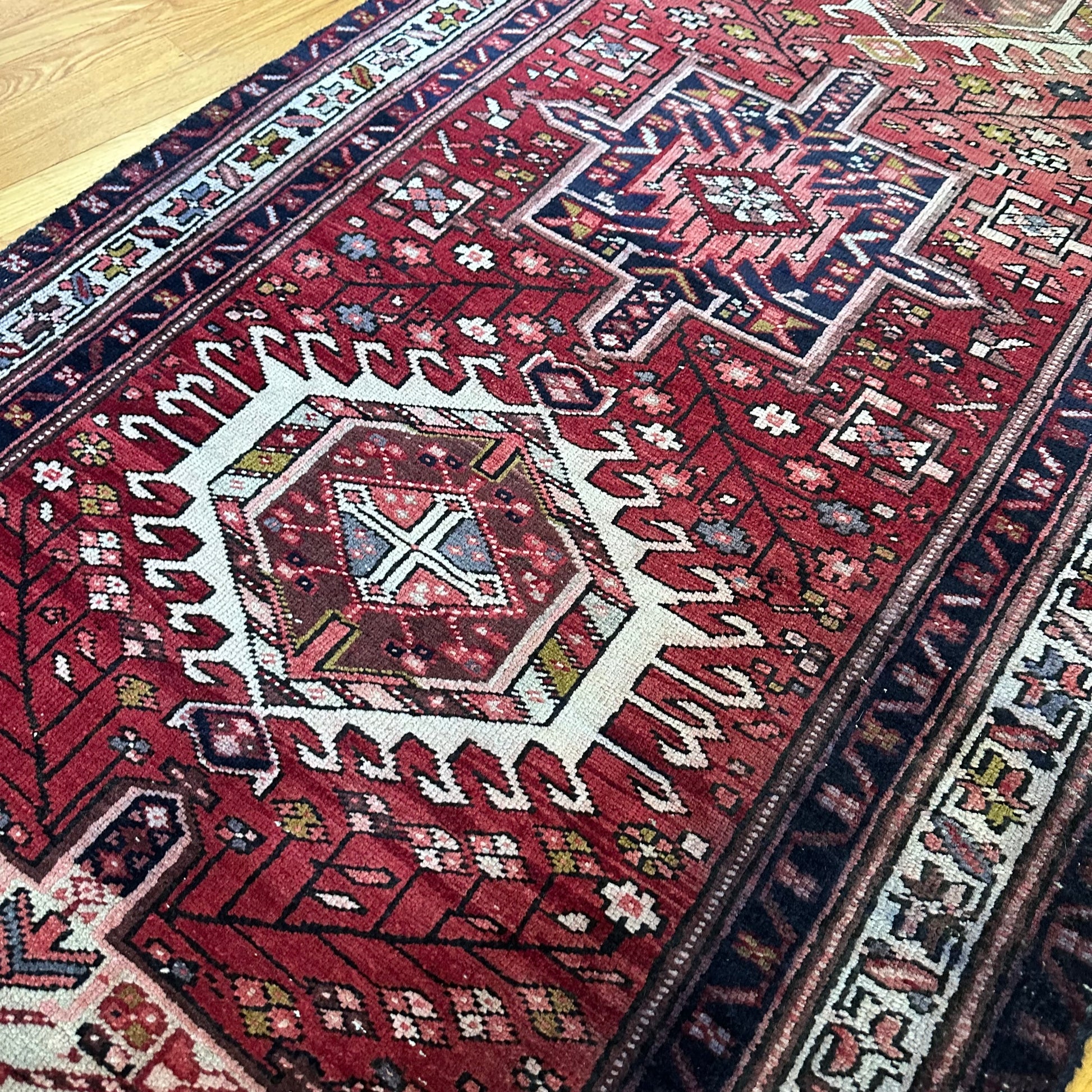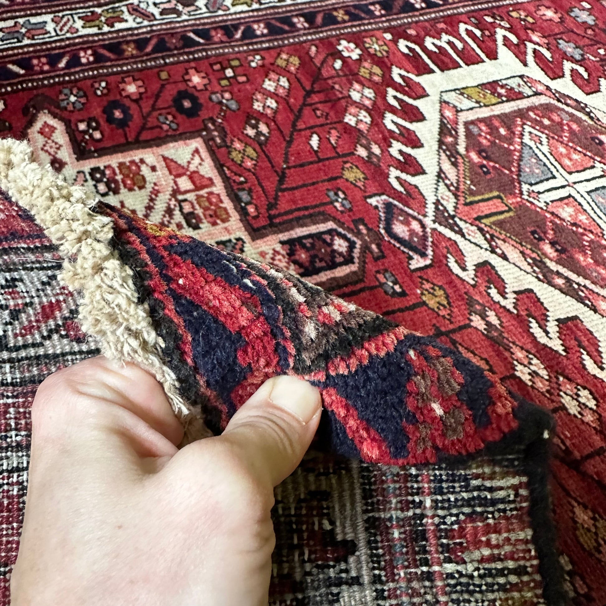 Handwoven vintage rugs are one-of-a-kind and have characteristics that make them charming and unique! Wear, patina, color variation, and imperfections caused by age are expected in hand-woven vintage rugs. Some rugs may not be perfectly straight or perfectly rectangular. Please look at the photos carefully - I always include photos of imperfections. Please reach out with questions before purchasing, all sales are final.