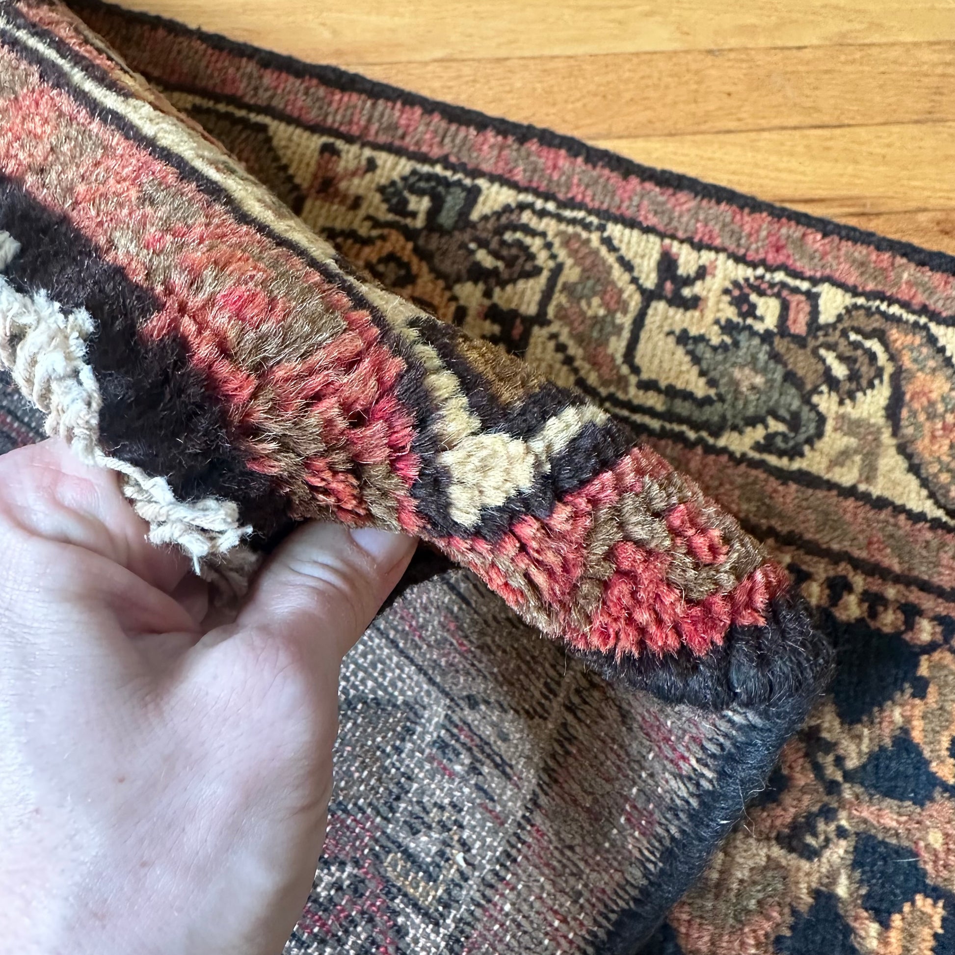 Handwoven vintage rugs are one-of-a-kind and have characteristics that make them charming and unique! Wear, patina, color variation, and imperfections caused by age are expected in hand-woven vintage rugs. Some rugs may not be perfectly straight or perfectly rectangular. Please look at the photos carefully - I always include photos of imperfections. Please reach out with questions before purchasing, all sales are final.